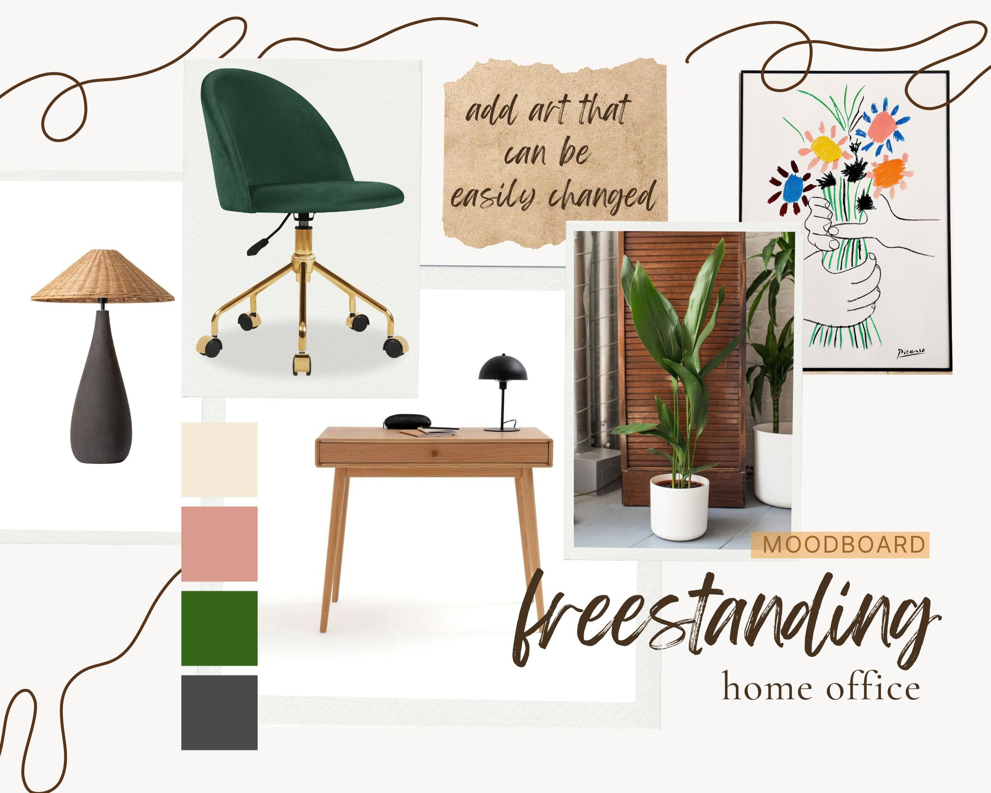 Moving the freestanding home office design to the opposite wall would help, but would mean meandering around the desk and chair when entering the room, as it’s next to the door.